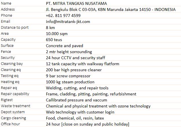 Mitratank is a depot specializing in isotank containers. We have been operating in Surabaya area since Jan 2013 under the name PT. Mitra Tangkas Pratama, with both local and international customers trusting their isotank containers to us. To further grow our business and to support the growing demand from our customers, we are establishing our second business unit in Jakarta area under the name of PT. Mitra Tangkas Nusatama.